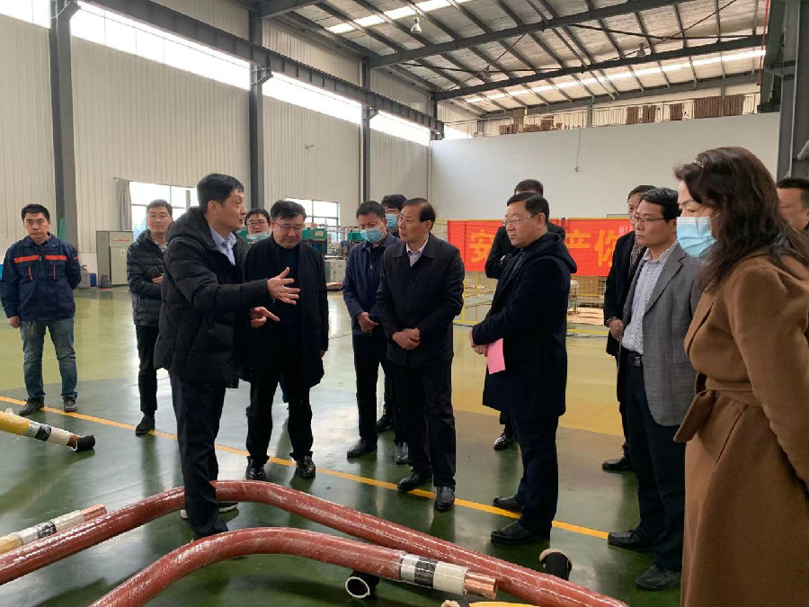 服務隊一行來到生產車間,現場考察了車間安全生產事宜,聽取了我司總經理牟煒、生產經理王善偉關于產品的情況介紹。